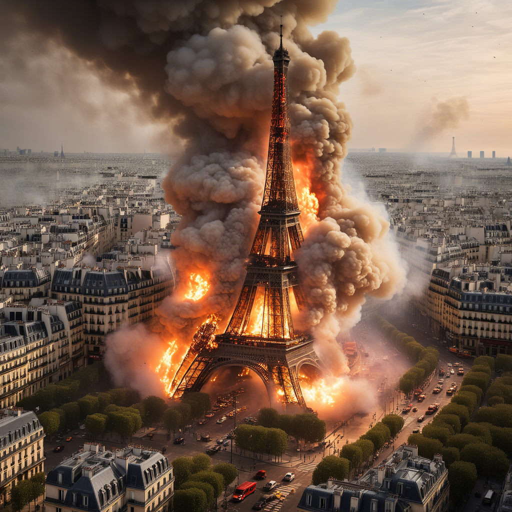 The image above to was generated using an AI image generation application named Venice. The creation process involved inputting a detailed prompt that described a specific location and depicted the Eiffel Tower engulfed in flames. The entire generation process was completed in about one minute on a standard Mac mini computer.